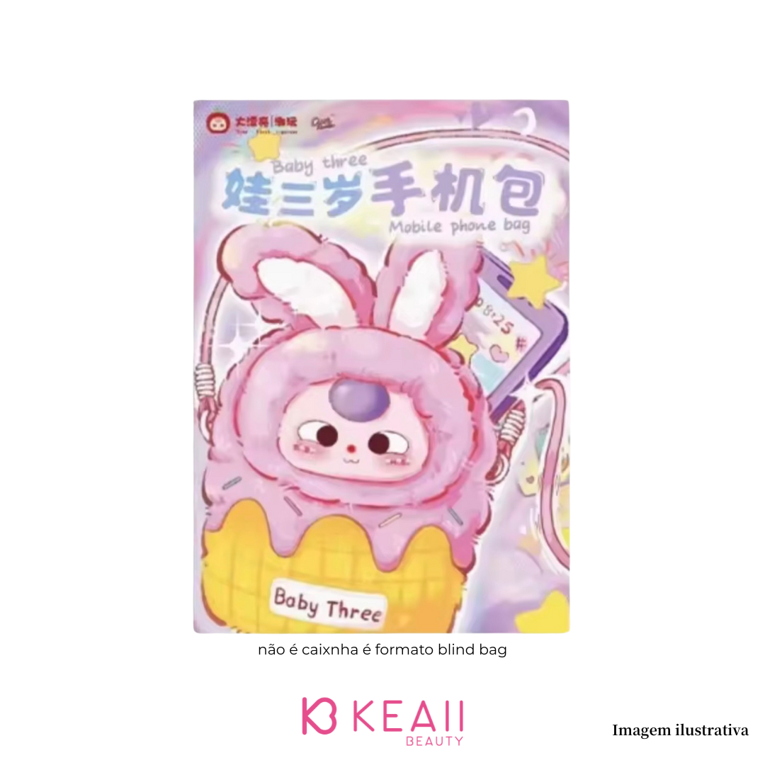 Transforme seu look e surpreenda-se! A Mobile Hanging Bag da Baby Three é uma mini bolsinha para celular que vem em formato blind bag, ou seja: cada pacote esconde um modelo diferente só descobre depois de abrir!