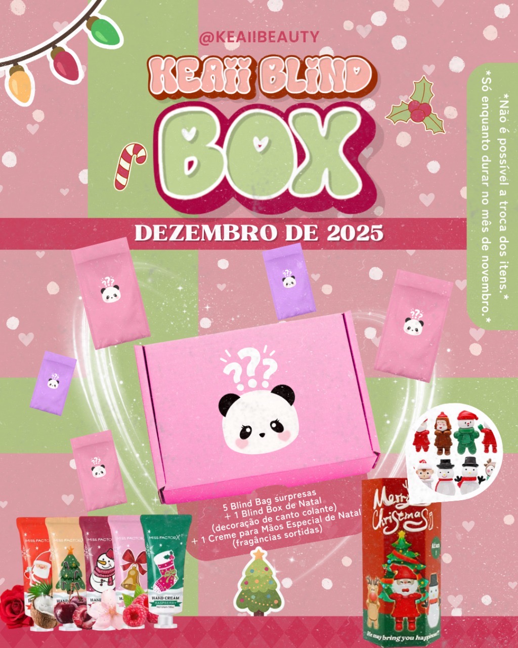 esse mês tem blind box de enfeite de canto especial de natal e creme para as mãos com