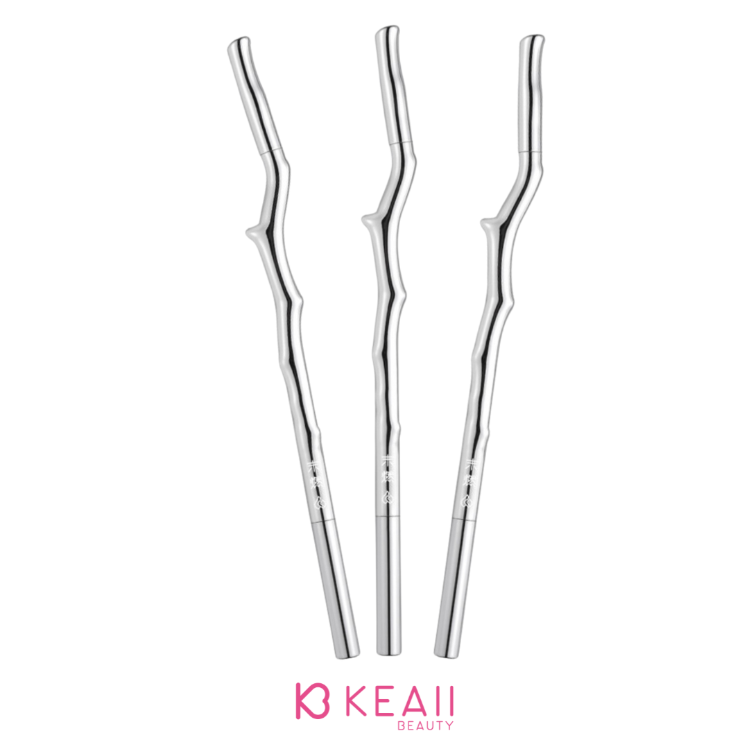 um dos seus produtos mais vendidos é o lápis retrátil de sobrancelha que tem 4 cores e com design bem moderno, cromado e formato de galho, um lado é o lápis e outro lado é a escova.