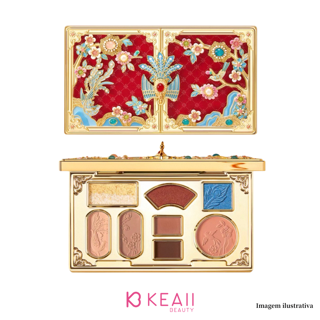 As cores vibrantes e os detalhes minuciosos evocam a riqueza visual das joias imperiais, enquanto os tons inspirados no jade e o brilho perolado trazem um acabamento refinado e luminoso.